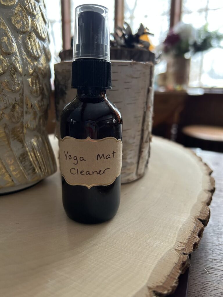 This essential oil based spray will keep your yoga mat class-ready! Tea tree and witch hazel kill foot funk, while peppermint, lemon and lavender keep your mat smelling fresh. Spray mat thoroughly and wipe with a paper towel or soft cloth. Convenient size is easy to toss in your yoga bag!