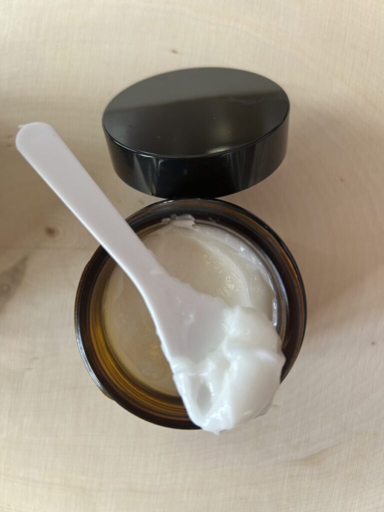 Ingredients: Magnesium chloride, coconut oil, shea butter, beeswax, lavender essential oil